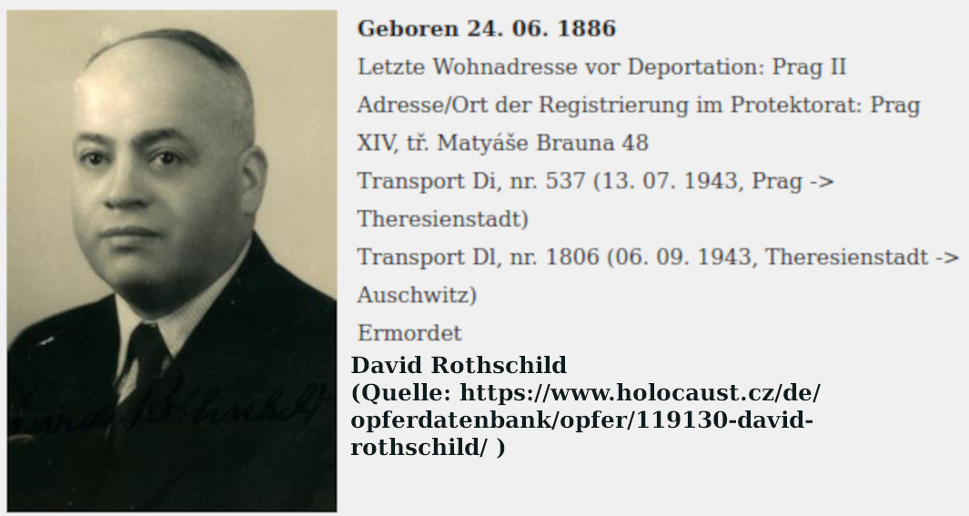 Die ganze Familie David Rot(h)schild, Else Rot(h)schild (Eliška (Else) Rothschildová), Josef Rot(h)schild und Margot Rot(h)schild (Rothschildová) wurden am selben