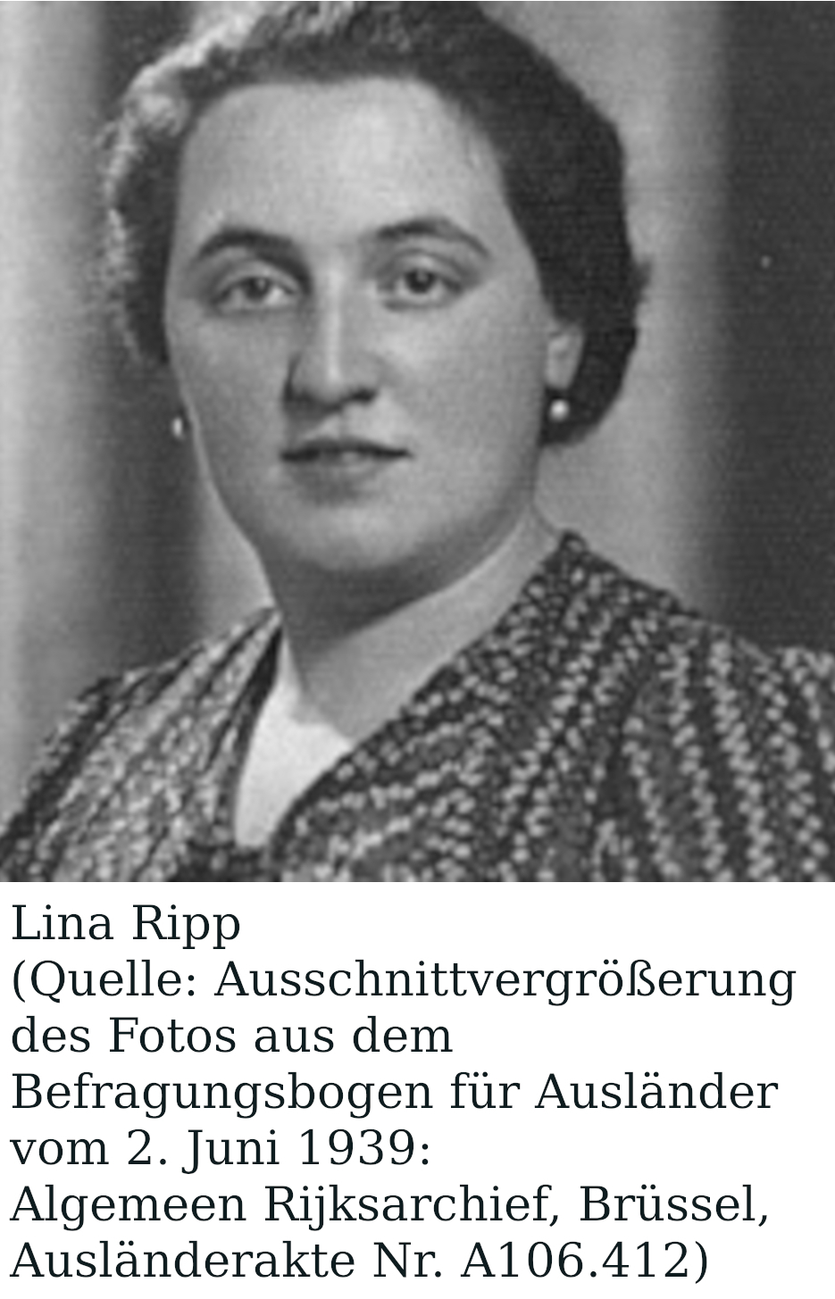 Nach der Zwangsausweisung ihres Mannes im Rahmen der "Polenaktion" 1938 und der zunehmenden antisemitischen Verfolgung floh Lina Ripp 1939 mit Julius und dem gemeinsamen Sohn Uriel nach Belgien. Dort lebte die Familie bis Dezember 1948 im Versteck, um der nationalsozialistischen Verfolgung zu entkommen.